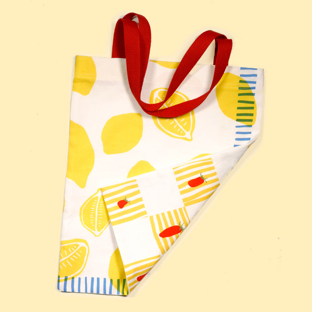 Brighten your errands with our Double-Sided Fruit Market Tote—a vibrant and versatile reusable tote bag made from extra yardage of our signature cotton-linen tea towel fabric. These handmade totes are crafted in our Portland, Oregon studio and feature two original fruit prints.